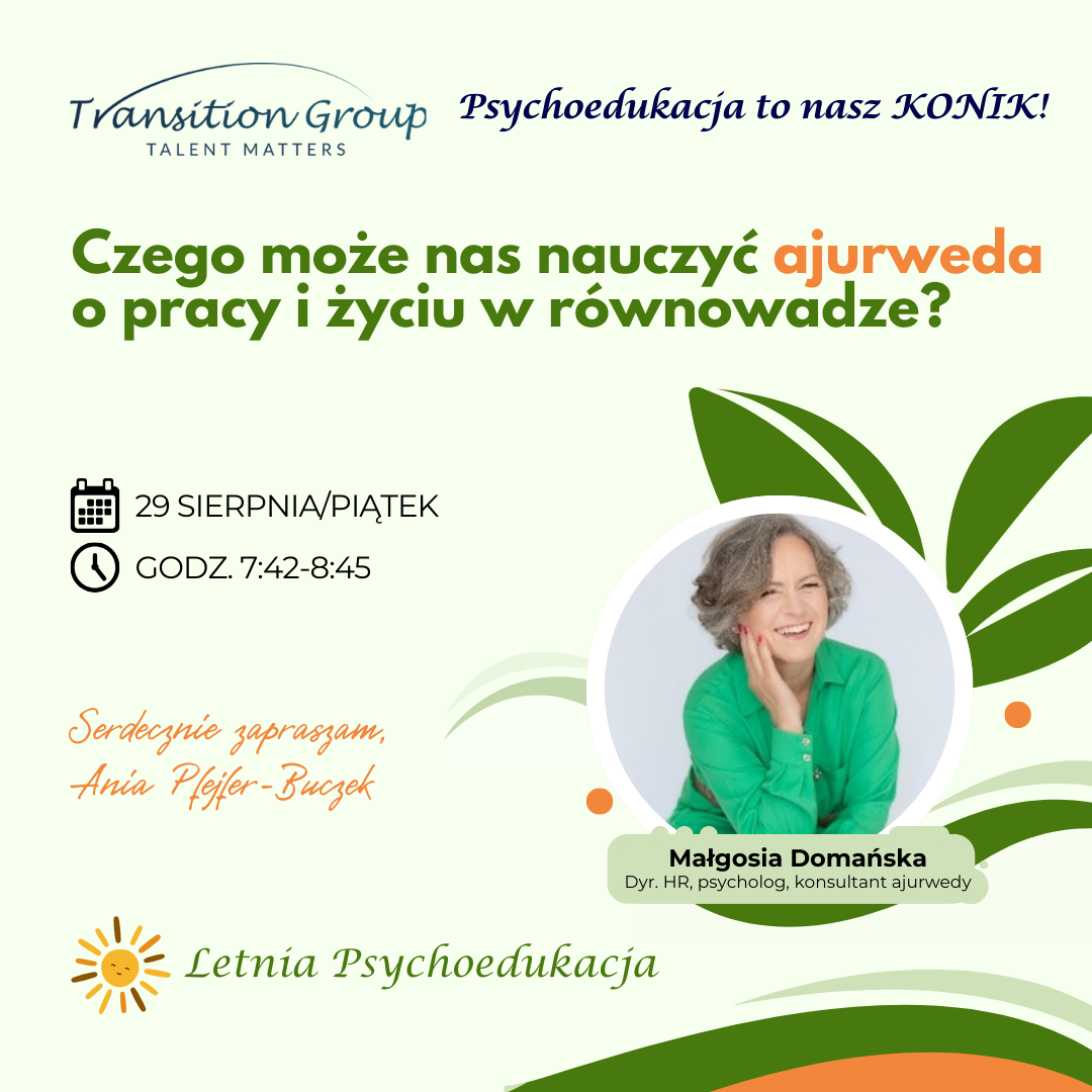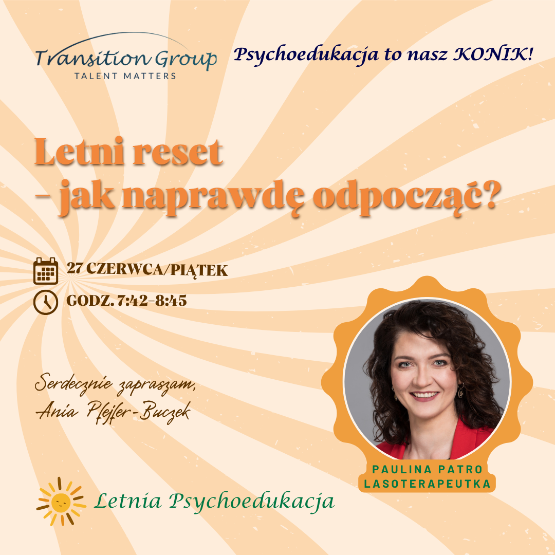 Teraz trwa Letnia Psychoedukacja, jak zwykle. Dobrostan to temat, który jest hasłem przewodnim Transition Group cały rok, ale w lecie dostaje dodatkowego słonecznego blasku🌞